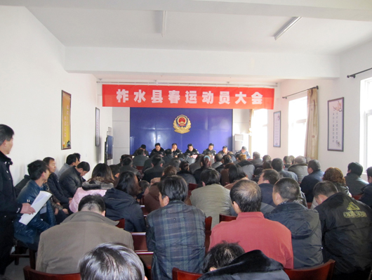 會議由柞水大隊副大隊長陳定院主持。會上宣布了《柞水縣公安局交通管理大隊2012年"春運"道路交通安全管理實施方案》,通報了近期全國幾起重特大道路交通事故情況。大隊長劉興海及交通局副局長蘇平貴就春運道路交通安全管理、運營工作作了詳細(xì)安排并提出了具體要求,會上客運、出租公司負(fù)責(zé)人作了表態(tài)發(fā)言,市交警支隊郭建民副支隊長針對柞水"春運"工作做了三點指示,郭支隊長要求:一要高度重視春運工作,"春運"工作對于維護(hù)社會經(jīng)濟(jì)發(fā)展和社會秩序穩(wěn)定的大局具有重要意義;二要將春運安全責(zé)任落實到位,加強(qiáng)安全防范,強(qiáng)化監(jiān)督檢查;三是交警部門要嚴(yán)查重處交通違法行為,務(wù)必把各類安全隱患消滅在萌芽之中。