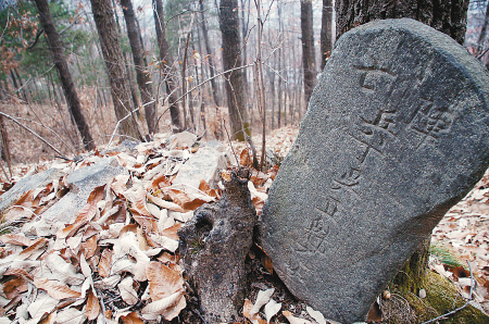 考古人員發(fā)現(xiàn)的墓地現(xiàn)存墓冢40余座,墓碑2通。墓冢大部分封土已平,僅存散亂塊石。一塊墓碑為青石石質(zhì),上圓下方,高55厘米,寬30厘米,碑文為陰刻楷書“陣亡兵丁吳正魁之墓”,無年款及立碑人。另一塊墓碑為方磚形,是在一塊28×45厘米土坯上先刻上碑文然后燒制而成的,碑文為“故外祖蔡公天化之墓”,落款為“咸豐十一年十二月初九”。