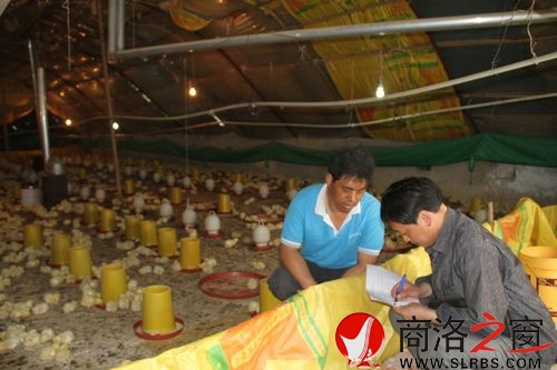 鎮(zhèn)計(jì)生辦主任黃博在金口村二組計(jì)生家庭戶陳忠哲肉雞養(yǎng)殖溫棚里開(kāi)展計(jì)生家庭創(chuàng)業(yè)排憂