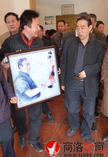 本網(wǎng)訊 (劉明博)近日,著名作家賈平凹回到商鎮(zhèn)中學(xué)與闊別四十多年的同學(xué)相聚座談,感恩母校,共敘同窗友情。活動中,丹鳳老年大學(xué)王闊精心創(chuàng)作《平凹像》一幅,在場人爭相傳看,成為一大亮點。特別是《秦腔》作品中的生活原型劉高興看后異常興奮地說:“太像了,和真平凹一個樣!”賈平凹把像又拿到手上看了看,欣喜地說到:“這是宣傳咱丹鳳的嘛,好!”