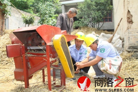供電所工作人員正在為群眾修理打麥機(jī)
