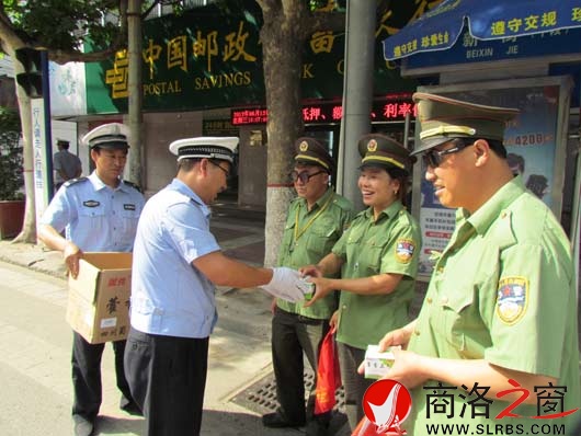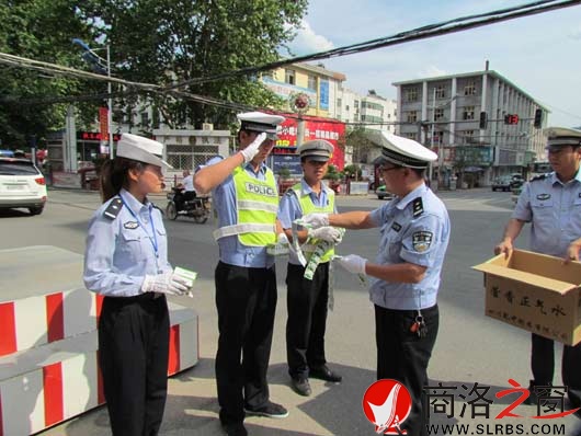 本網(wǎng)訊(王翼)連日來(lái),天碧云淡,艷陽(yáng)高照,商洛市公安局交警支隊(duì)商州大隊(duì)城區(qū)中隊(duì)民警仍一如既往的奮戰(zhàn)在三尺崗臺(tái)上。6月13日,商州交警大隊(duì)領(lǐng)導(dǎo)冒著酷暑高溫,看望和慰問(wèn)全體執(zhí)勤民警、交通協(xié)勤員,并為他們送去藿香正氣水、人丹等防暑藥品,勉勵(lì)大家不負(fù)眾望,努力工作,為廣大市民安全出行創(chuàng)造良好的交通環(huán)境。