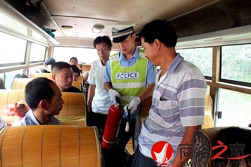 本網(wǎng)訊 (寧啟幸)鎮(zhèn)安交管大隊(duì)注重對(duì)廣大乘客的安全自救常識(shí)教育培訓(xùn),以提高公眾在突發(fā)災(zāi)害時(shí)的應(yīng)急自救能力。圖為民警在向乘客講解滅火器使用方法。