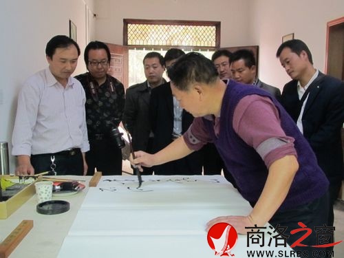 本網(wǎng)訊 (記者 賈書章)十月五日,我市部分書畫家來到商州區(qū)楊峪河鎮(zhèn)民主村半潭河組一農(nóng)戶家里,在小山溝里舉辦了一場別開生面的藝術家進農(nóng)家書畫筆會。