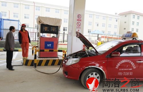 本網(wǎng)訊 (程 剛 邱宏波)隨著洛南縣城區(qū)管道天然氣的通氣點(diǎn)火,該縣城區(qū)的出租車用上了安全、污染少的環(huán)保清潔能源。圖為西城區(qū)加氣站正在給出租車加天然氣。