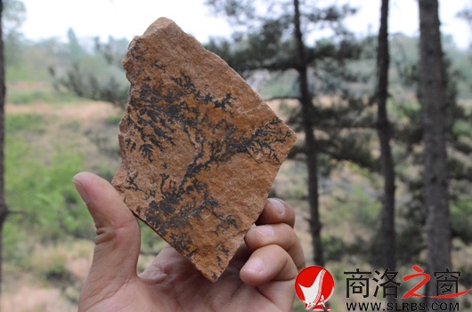 5月14日,記者來到洛南縣城南饅頭山,在張先生帶領(lǐng)下,在山的南溝里看到,溝兩邊長滿了郁郁蔥蔥的大松樹,緊挨地面的山坡上裸露著黃褐色的板狀巖石,山溝里隨處可見一些零碎的片石。“你看,這個上邊有個小樹葉!”在亂石中翻撿尋找的張先生說。隨后,記者也在一處石頭堆中找到了樹葉長在石頭中的石片,石片中的樹葉葉脈清晰可見,顏色為黑色。