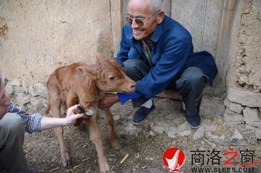 經(jīng)過測(cè)量,這頭小牛犢體約一米,體重40公斤,在緊挨其右前肢后向后斜生出一條長38公分的腿,膝關(guān)節(jié)處向前呈90度彎曲。很奇怪的是,這第五條腿末端長有兩只蹄子。牛犢主人78歲的李義發(fā)介紹,10天前的清晨,已經(jīng)10歲的老母牛產(chǎn)下這頭畸形牛犢,在這之前已經(jīng)產(chǎn)過四胎,前三胎牛犢均正常。“我都快80歲了,從來沒見過這事,附近的村民聽說后都好奇前來觀看。”李義發(fā)說,他們這里養(yǎng)牛的很多,都是當(dāng)?shù)氐耐僚?,各家的牛?jīng)常跑到一起,還不知道母牛是和哪只公牛產(chǎn)下的這牛犢。但可以肯定的是,由于交通不便,當(dāng)?shù)厝罕娢古6际寝r(nóng)作物秸稈和山上青草,應(yīng)該不是因飼料污染引起的畸形。