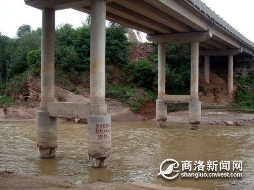 據(jù)介紹,6月初,一場大雨過后,公路巡查人員發(fā)現(xiàn)高橋大橋2#、3#橋墩樁基鋼筋外露折斷,經(jīng)過測量,原本在2010年裸露3米的基礎(chǔ)上又露出了3米多,巡查人員立即向商洛公路局領(lǐng)導(dǎo)做了匯報。接到巡查人員的報告后,商洛公路局在第一時間向省公路局做了匯報,并請求專家前來對橋梁做一個安全評估。6月8日,省上的專家對橋梁進(jìn)行了實地勘測,由于受雨水沖刷,河床下切,2#、3#橋墩基礎(chǔ)沖刷嚴(yán)重,樁基礎(chǔ)外露近7米,部分樁基礎(chǔ)鋼筋外露銹濁,通過技術(shù)參數(shù)定為四類危橋。