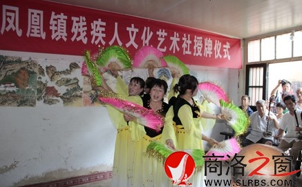 商洛日?qǐng)?bào)訊(劉鳳霞 沈瑤 朱恢軍)7月16日,柞水縣“鳳凰鎮(zhèn)殘疾人文化藝術(shù)社”揭牌成立,為豐富殘疾人文化生活搭建了一個(gè)平臺(tái)。圖為部分殘疾人正在表演自編的節(jié)目。
