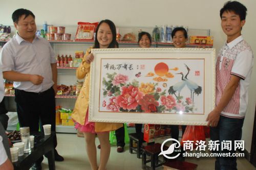 聽說孫培龍和妻子王瑞是商洛唯一一對(duì)上了星光大道的夫妻,他們一時(shí)成了山村里的新聞人物,周圍的群眾和移民戶紛紛前來觀看,高興地問長問短。在孫培龍家,商南縣委副書記崔華鋒問寒噓暖與隨行人員參觀了孫培龍新樓的每個(gè)房間,為孫培龍贈(zèng)送了價(jià)值1500元的題有“幸福萬年長”的大堂刺繡裝飾品,同時(shí)給孫培龍多病的母親送上了水果、副食等慰問品。(商洛新聞網(wǎng))