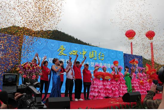 “愛(ài)心中國(guó)行”在洛峪村站捐助人民幣一千多萬(wàn)元,其中除20輛東風(fēng)標(biāo)致轎車(chē)和30臺(tái)電腦等實(shí)物外,其余全部以現(xiàn)金方式現(xiàn)場(chǎng)捐助。其資助了山陽(yáng)縣5個(gè)村建新農(nóng)村項(xiàng)目,還向山陽(yáng)縣銀花鎮(zhèn)中學(xué)和山陽(yáng)縣兩嶺九年制學(xué)校各捐款10萬(wàn)元,幫助鄉(xiāng)村孩子完成學(xué)業(yè)。其他受捐對(duì)象為來(lái)自全國(guó)各地的愛(ài)心使者、愛(ài)心志愿者、有特殊貢獻(xiàn)的愛(ài)心大使、特別貧困家庭和殘疾人。