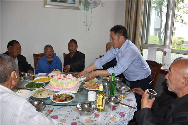 “你趕上了一個好日子,今天是院里給院民們集中過生日的日子,我們一起去和院民們慶祝一下吧”。在我還被敬老院幽美的環(huán)境吸引而沉浸其中時,馬新建院長的話又把我的興致調(diào)動到了一個新的高點。