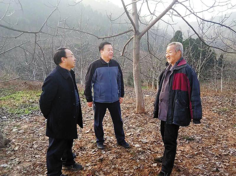 幫扶單位負(fù)責(zé)人到集中連片核桃園了解土地流轉(zhuǎn)事宜