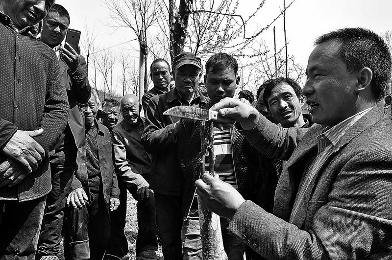 6處改良示范點的核桃增產,激發(fā)了群眾對核桃科管的熱情。從此,他抓住時機先后在縣職教中心、農廣校、各鎮(zhèn)辦勞保所、縣財校等培訓機構,累計授課160多期,培訓技術干部、農民技術員2萬多人次,發(fā)放宣傳資料3萬多份。通過這些技術培訓,現在全縣有200多人熟練掌握核桃科管技術,80多人加入到核桃科管嫁接技術服務隊,還吸收50多名年輕力壯有果樹管理愛好的貧困勞動力,實現勞務脫貧,400名群眾掌握了核桃嫁接、接后管理、大田管理、整形修剪、病蟲害防治等技術要領。近兩年,他把參加培訓的學員拉進群,按時提醒他們做好核桃科管,隨時解答生產中的實際問題,指導他們正確認識病蟲害,合理科學的防治。同時在全縣成立了8支核桃產業(yè)技術服務隊,巡回各核桃產業(yè)基地開展以核桃為主的經濟林木綜合科管工作。