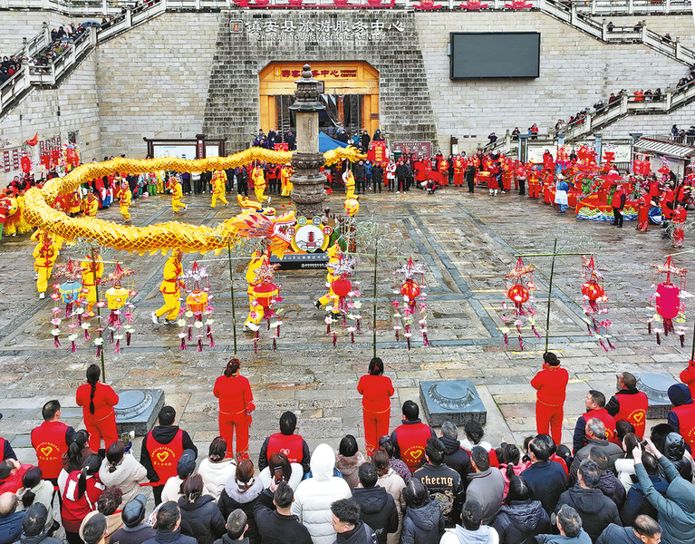 2月21日,鎮(zhèn)安縣2024迎春燈會在縣金臺廣場舉行開燈儀式,獅子、龍燈、旱船、彩燈輪番上陣,將新年的氣氛推向高潮。(本報通訊員 楊建東 攝)