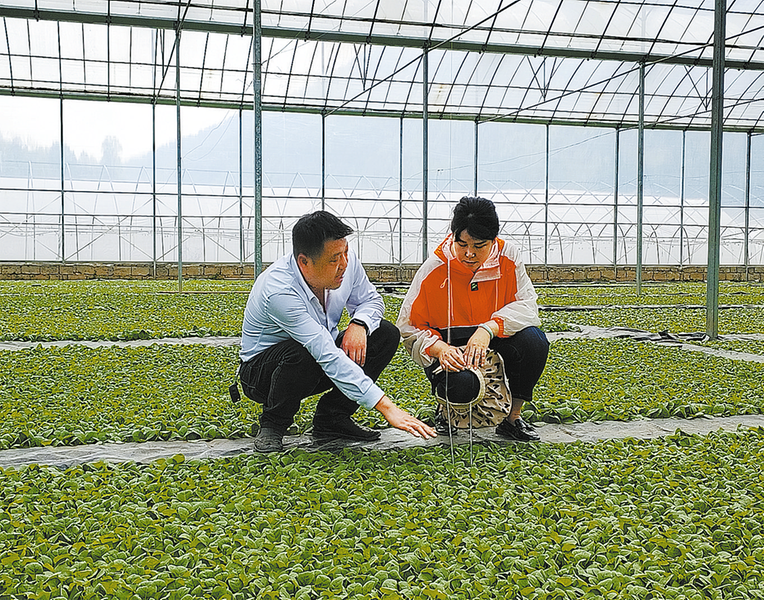 駐村第一書記查看烤煙苗生長(zhǎng)情況
