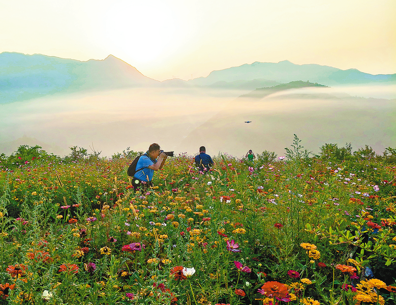 初秋的鎮(zhèn)安縣海棠山,日出、花海、霧海交織在一起相互映襯,構(gòu)成了一幅如夢(mèng)似幻的畫(huà)卷,讓人沉醉其中,流連忘返,吸引了西安等地不少游客前來(lái)觀賞拍照。