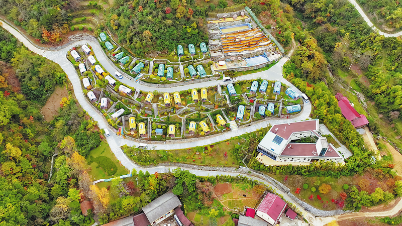 10月末,鎮(zhèn)安縣青銅關(guān)鎮(zhèn)豐收村迎來(lái)一批批游客前來(lái)賞秋游玩。空中鳥(niǎo)瞰,村內(nèi)道路阡陌縱橫,串聯(lián)起山腰上的特色民宿罐罐屋及山腳的農(nóng)家小院,遠(yuǎn)處青山綠樹(shù)換上彩色的盛裝,山下沿線(xiàn)田園、樹(shù)木、小院互相托襯,別有韻味。游人、觀(guān)光車(chē)穿梭其中,宛如人在畫(huà)中游。(本報(bào)通訊員 陸 波 攝)