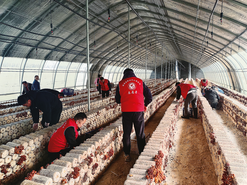 “今年頭茬滑子菇長勢好、成熟快,采收人手緊缺。除了本村婦女幫工,鄰村也有人前來務(wù)工。這不,鎮(zhèn)上的‘民族之花’巾幗志愿服務(wù)隊也來了六七個人幫忙。”鎮(zhèn)駐村干部惠德田介紹,“今年村上已投產(chǎn)20萬袋菌棒,頭茬已產(chǎn)出鮮滑子菇1萬公斤,制作腌漬菇6000公斤。隨著種植規(guī)模擴(kuò)大,成熟時需要大量婦女勞力參與采摘。”
