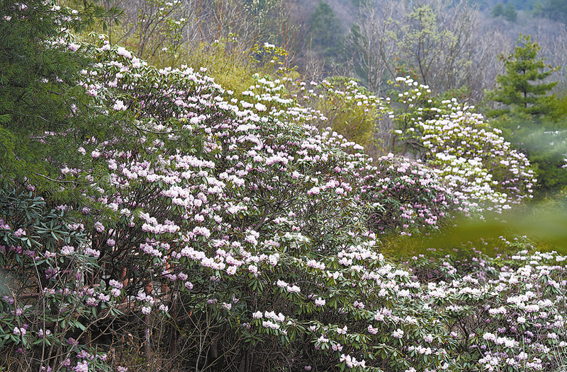 木王山國家森林公園景區(qū)坐擁西北連片面積最大的杜鵑花分布區(qū),漫山遍野花團(tuán)錦簇,猶如粉色云霞輕柔地飄浮在高山之巔。這片杜鵑花面積達(dá)千余畝,其中樹齡最長的已達(dá)271年,堪稱西北最大的原始杜鵑林帶,因而享有“千山杜鵑”的美譽(yù)。