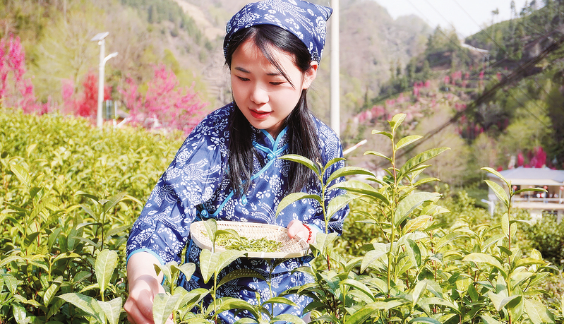 “二月天楊柳醉春煙,三月三來山青草漫漫,最美是人間四月天,一江春水綠如藍……”4月10日,鎮(zhèn)安縣達仁鎮(zhèn)象園村的茶山上,云霧繚繞。25歲的程芳穿梭在茶樹間,指尖拂過沾著清露的茶芽,嘴里輕輕哼唱的旋律,仿佛為這幅春日采茶圖配上了靈動的音符。誰能想到,眼前這個動作嫻熟的采茶姑娘,一年多前還是城市里的一名鋼琴教師。