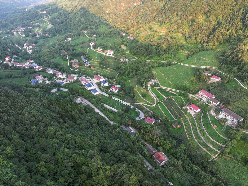 俯瞰聯(lián)盟村,白墻黛瓦點綴在青山綠水間。