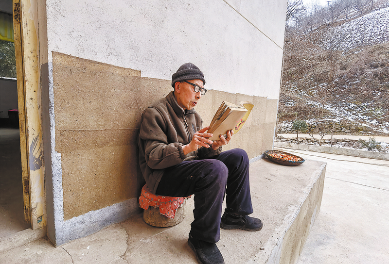 3月6日早晨,劉翠林在自家門口認真讀著經(jīng)典書籍《開國將軍》。