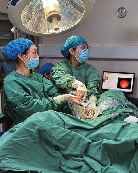 在高淳醫(yī)院幫扶專家吳靜芬(右)的指導(dǎo)教學(xué)下,柞水縣醫(yī)院醫(yī)生基本掌握了宮腔鏡手術(shù)技能。