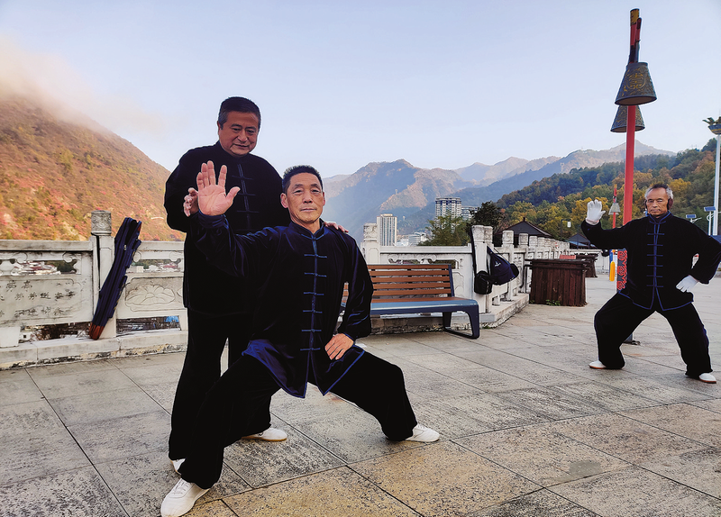 陳六一(左后)指導拳友練拳