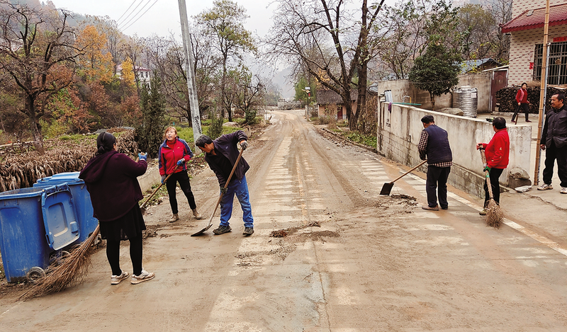 村民自發(fā)打掃道路,營造良好環(huán)境。