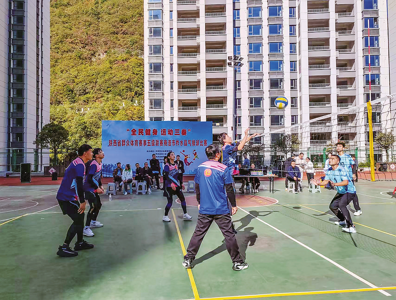 陜西省群眾體育賽事五級(jí)聯(lián)賽柞水縣氣排球比賽現(xiàn)場(chǎng)