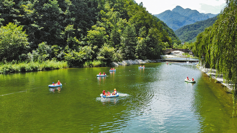 8月13日,柞水縣營盤鎮(zhèn)朱家灣村的佬林峽谷漂流現(xiàn)場,眾多游客乘筏逐浪。入夏以來,牛背梁旅游度假區(qū)憑借秦嶺山水清涼資源,吸引各地游客慕名而來,在山水間解鎖避暑新體驗。 (本報記者 黨率航 攝)