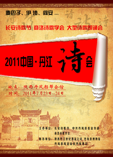 為弘揚商山詩歌文化,慶祝中國共產黨成立90周年,由長安詩歌節(jié)、中共丹鳳縣委宣傳部、商洛詩歌學會共同舉辦的“2011中國·丹江詩會”大型詩歌朗誦會將于7月24日上午8時在船幫會館盛大開幕,著名詩人秦巴子、伊沙、閻安等率長安詩歌節(jié)與商洛詩歌學會會員,在歷經百年風華的船幫會館院內唱響當代詩歌幸福的聲音。